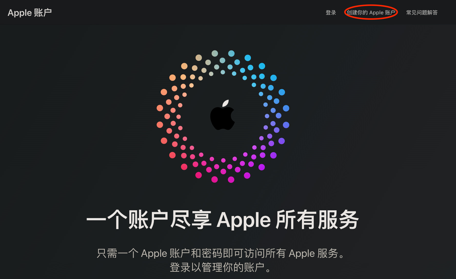 1.打开苹果官网,右上角,选择创建账户;